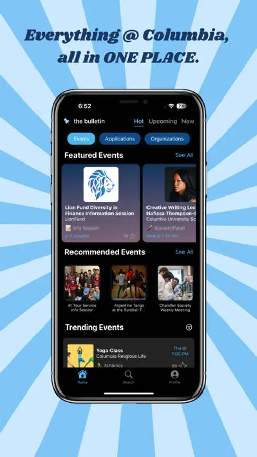 Introducing The Bulletin, your go-to app for all campus opportunities centralized in one easy-to-use platform for Columbia University students. Designed with students, organizers, and the university community in mind, The Bulletin streamlines student engagement like never before.