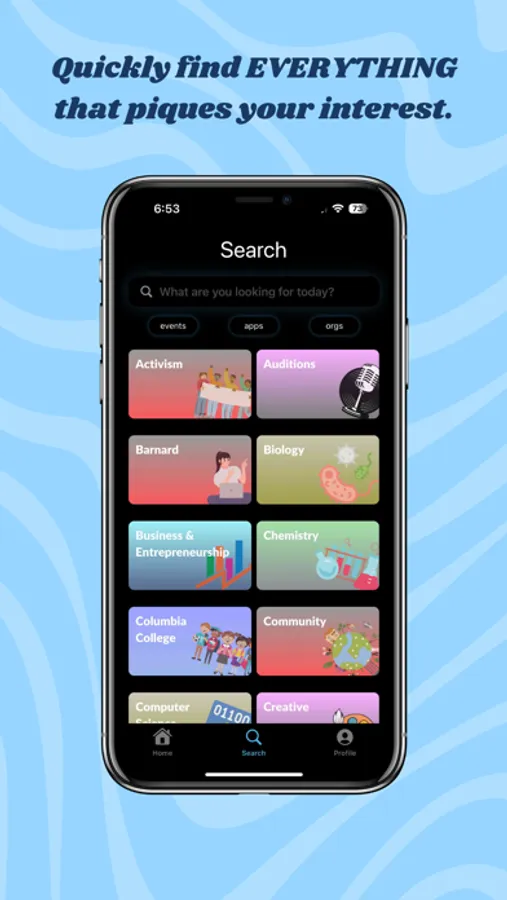 ⁃ Dive into a personalized experience that connects you to tailored events, clubs, and activities.