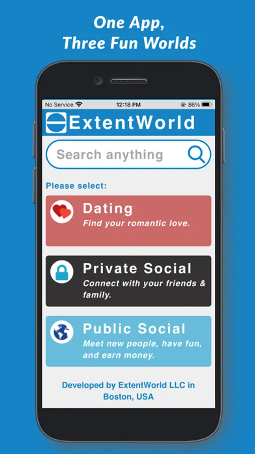 1) EXTENTWORLD DATING: Trusted Affordable Online Dating. It is a fun and safe way to meet real local singles and find your romantic love. As ExtentWorld Dating prioritizes safety and privacy, your dating profile is protected from being seen by your coworkers, friends, or family if they connect with you on ExtentWorld. Only verified users can use ExtentWorld Dating.