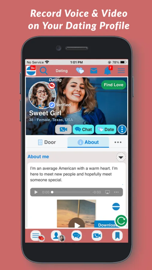 3) Account verification by video selfie with voice, which is the strongest verification feature ever used for online dating and social media.