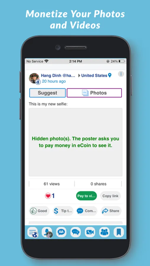 1) Monetize your photos and videos on ExtentWorld Public Social