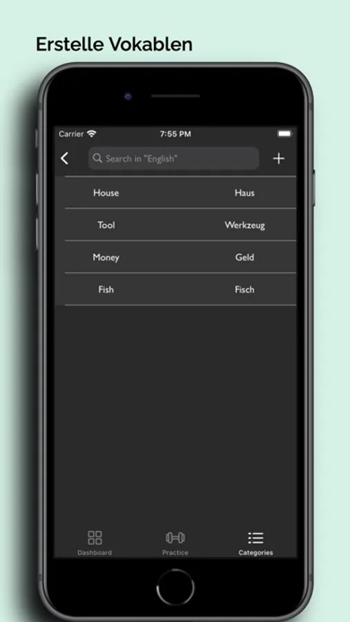 Vocab ist eine minimalisitsche App zum Vokabeln lernen.Durch das einfache und schlichte Design lassen sich Kategorien und Vokabeln einfach und strukturiert anlegen und lernen.
