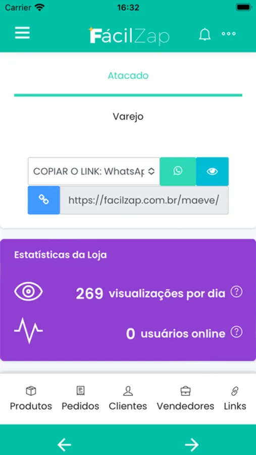 - O Lojista entra no site https://facilzap.com.br/ faz seu cadastro, cadastra seus produtos e o sistema gera links com catálogo de produtos, que compartilhará com seus clientes para receber os pedidos.