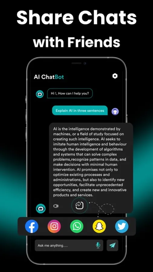 Utilize the power of artificial intelligence for the benefit of your work, studies, and personal life. Get this chatbot AI assistant app for free and have a personal virtual assistant that can evaluate and comprehend your input to generate intelligent suggestions in real time.