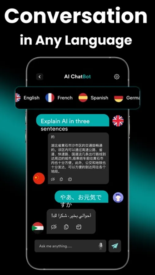 ● Use our AI ChatBot in your native language as we are one of the rare AI chatbots that supports 20+ languages other than English.
