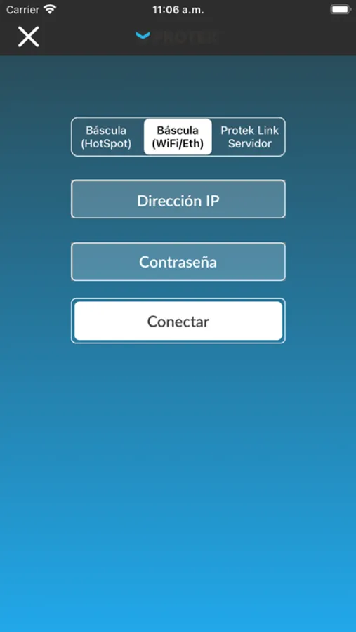 Se puede establecer una comunicación directamente con la báscula Protek, una vez establecida la comunicación con la báscula se hará uso de las siguientes funcionalidades: