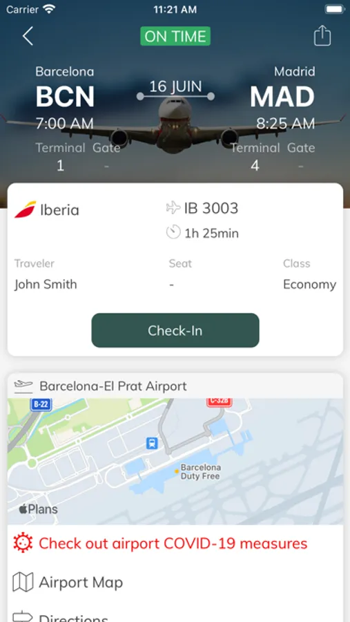 Last minute airport information: plans of the facilities and location of services, terminals and boarding gates, notification of boarding gate assignment and changes, delays and cancellations, among other things. Making your life easier before take-off and after landing.