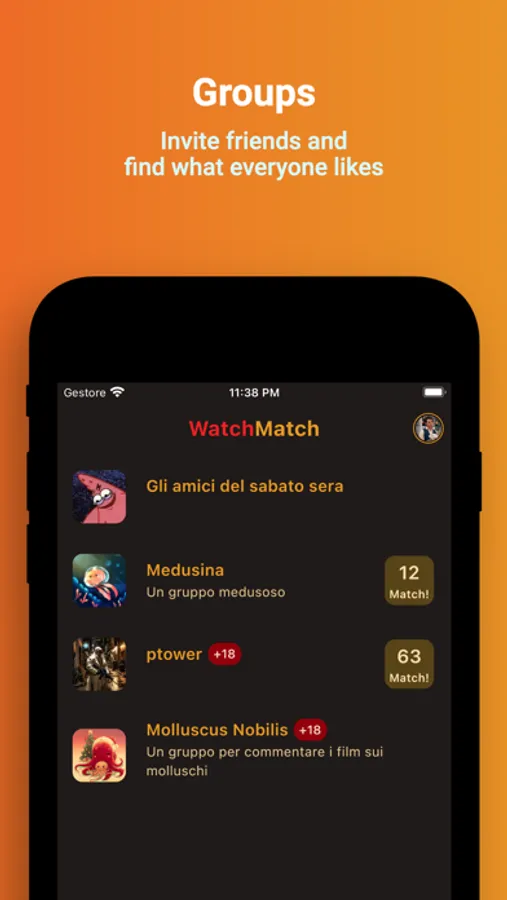 Just create a group, make your friends scan the code and swipe on the movies posters. The app will tell you when the majority have matched the same movie and you will find it into the group tab!