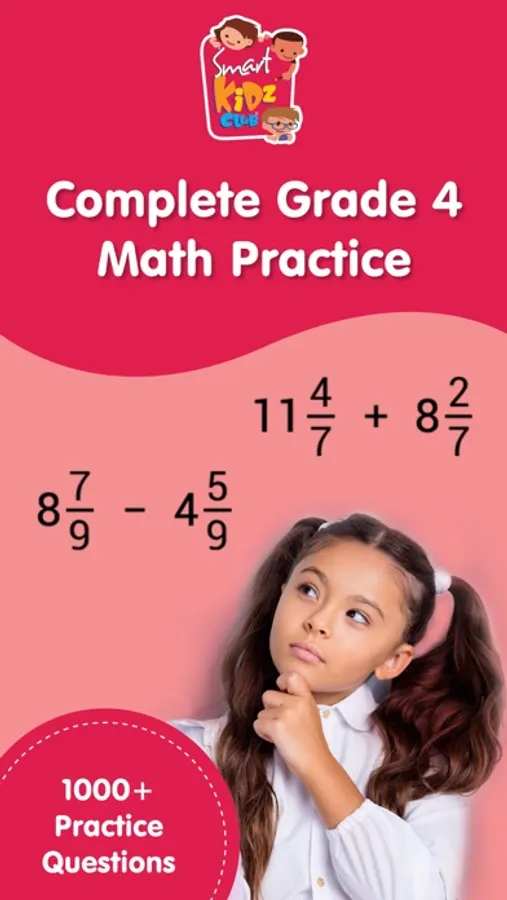 Smart Kidz Club Grade 4 Math App is curriculum-aligned for 9-10-year-olds to practice and master all the required grade 3 math skills.