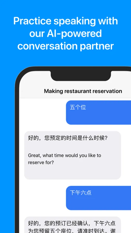 • Regular practice with ChatLingo helps you build confidence, become more fluent, and prepare for real-life discussions and situations.