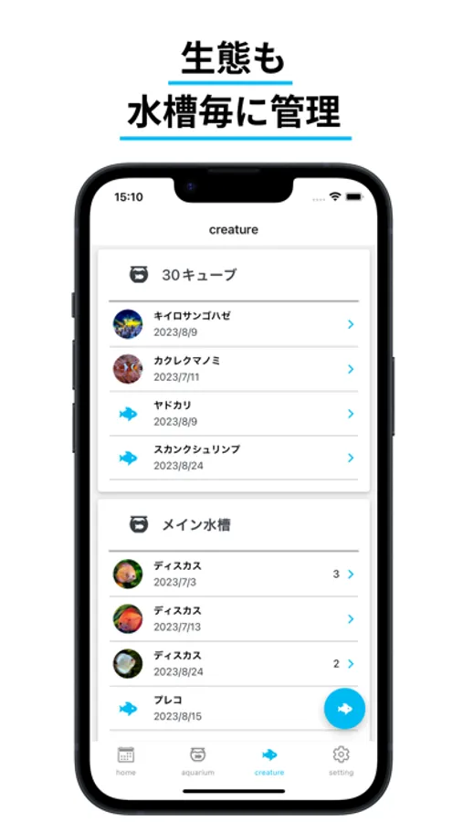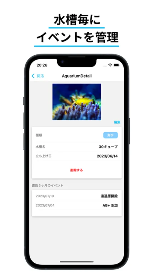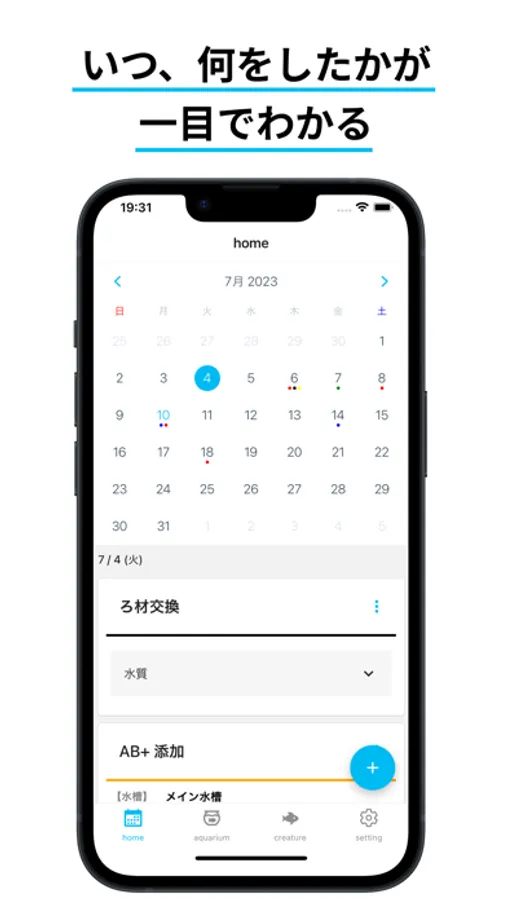 水替え、水質検査、水槽管理や生態管理など全てのことこのアプリで管理することで、過去の情報も簡単に閲覧が可能です。