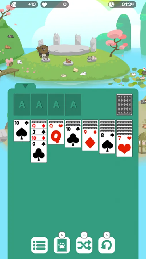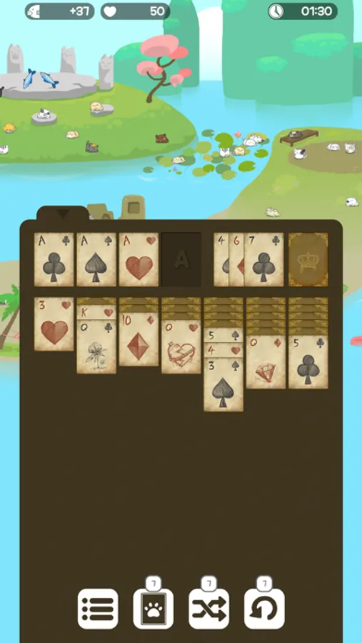 The more you play Solitaire, the better the world above the sea will grow. And the number of cats following you will increase.