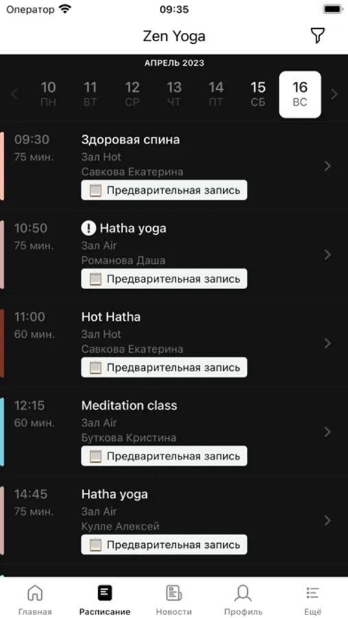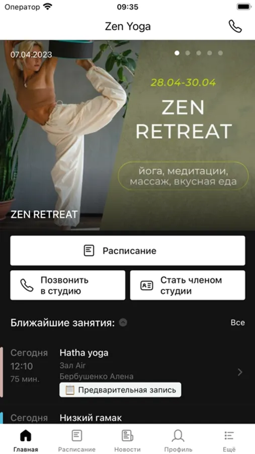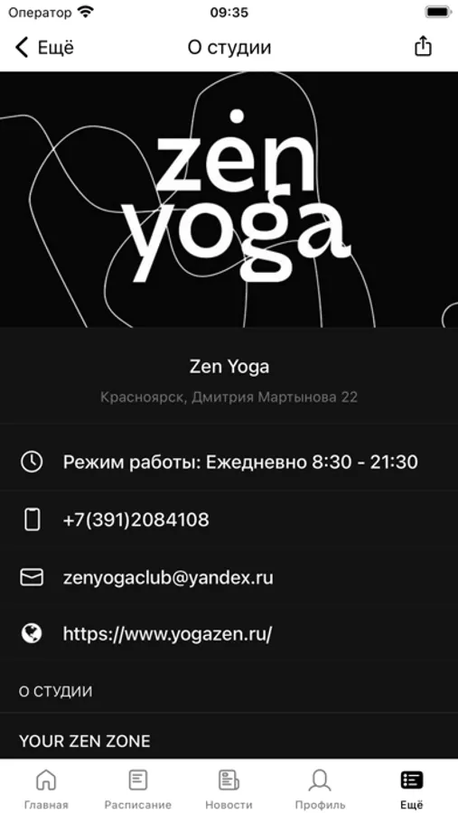 Приложение для клиентов студии ZEN yoga.
