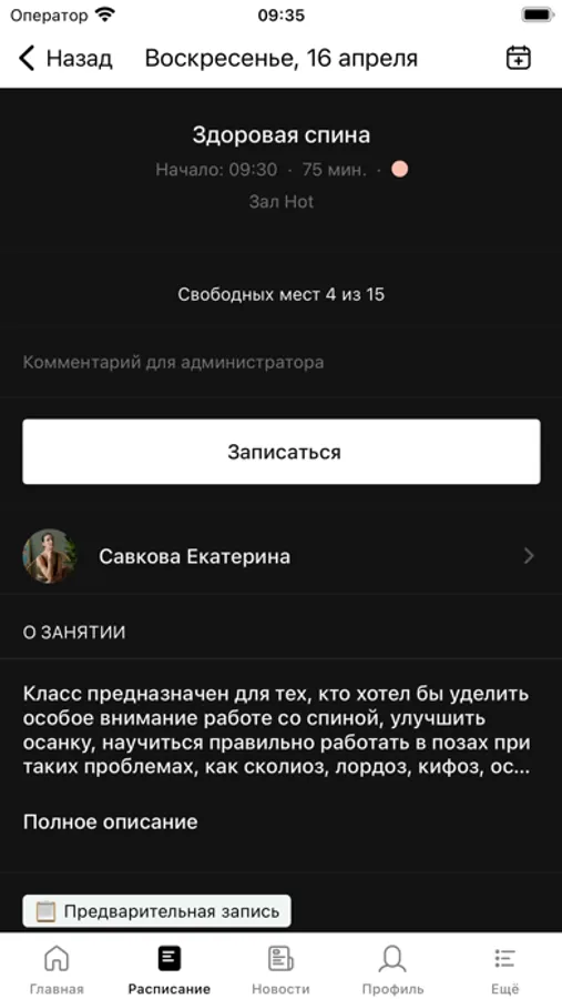 -записаться на занятие,
