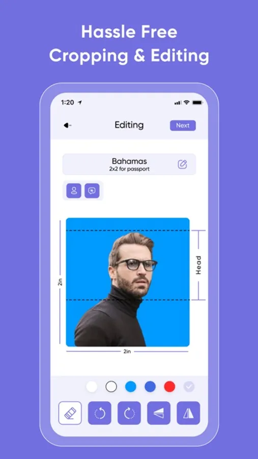 Customizable Background Colors: The app lets you choose from a variety of background colors that are compliant with the passport photo regulations of different countries. Whether it's a plain white or off-white background or a specific color required by a country, you can easily customize the background to meet the exact specifications.