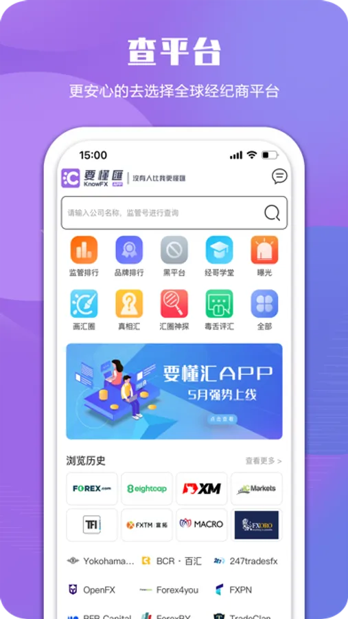 要懂匯是一款全球化的金融信息查询学习工具,其核心功能是对收录的外汇交易企业提供基础的信息排查、监管牌照查询、投诉维权、风险曝光、信用评价服务,帮助用户筛选优质的外汇交易企业,远离行业黑幕以及虚假交易企业。