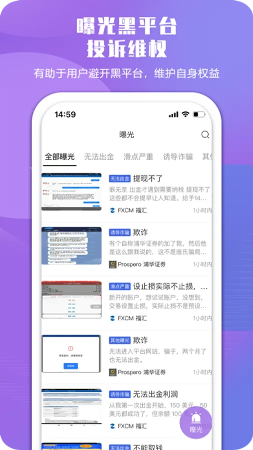- 曝光:收集了用户们的意见形成的板块,作为警示文章和帖子,让后续的新用户以及老用户们注意避雷,更好地维护自身的权利和保障自己的账户安全。
