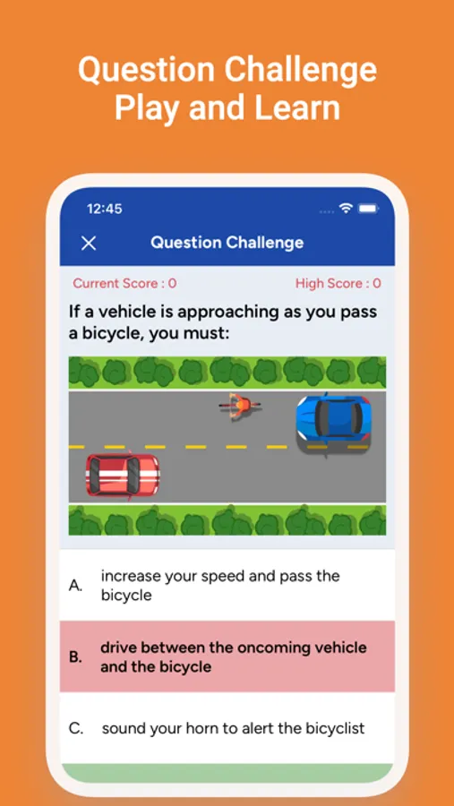 This is a unique feature of our application. It allows you learn while playing a challenge game. Your score will go up by one point each time you correctly answer a question up until the point where you get it wrong. It keeps record of your high score.