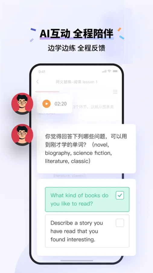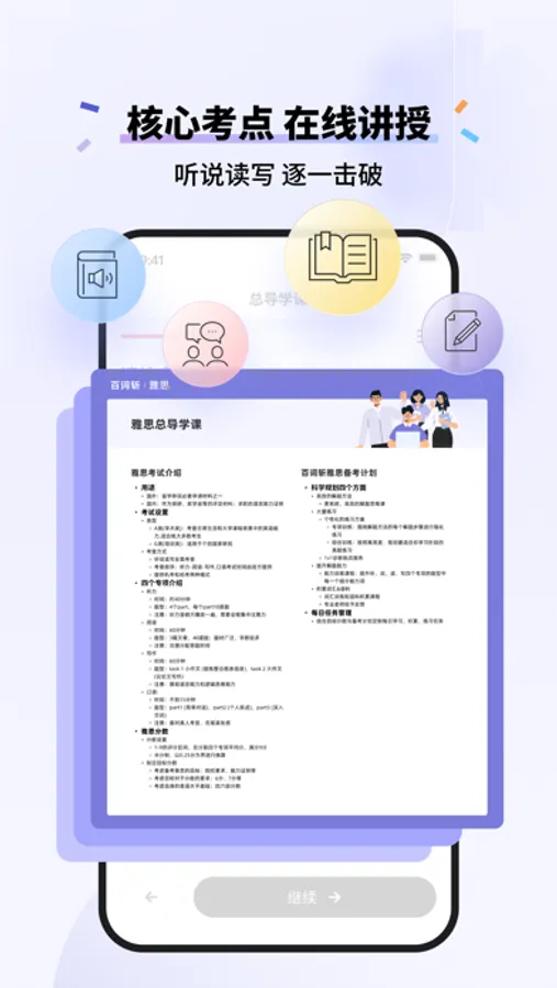 雅思备考不只是解题技巧和联系,我们通过「词汇训练+语料积累+解题技巧+能力提升」4种备考任务,真正做到一站式备考。并且通过最先进的AI互动课,拒绝流水账式讲解,直接有效提分。