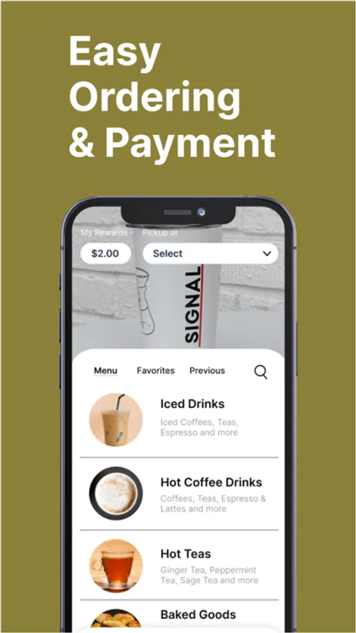 The Signal Roasters Coffee app allows customers to easily order ahead and receive great rewards.