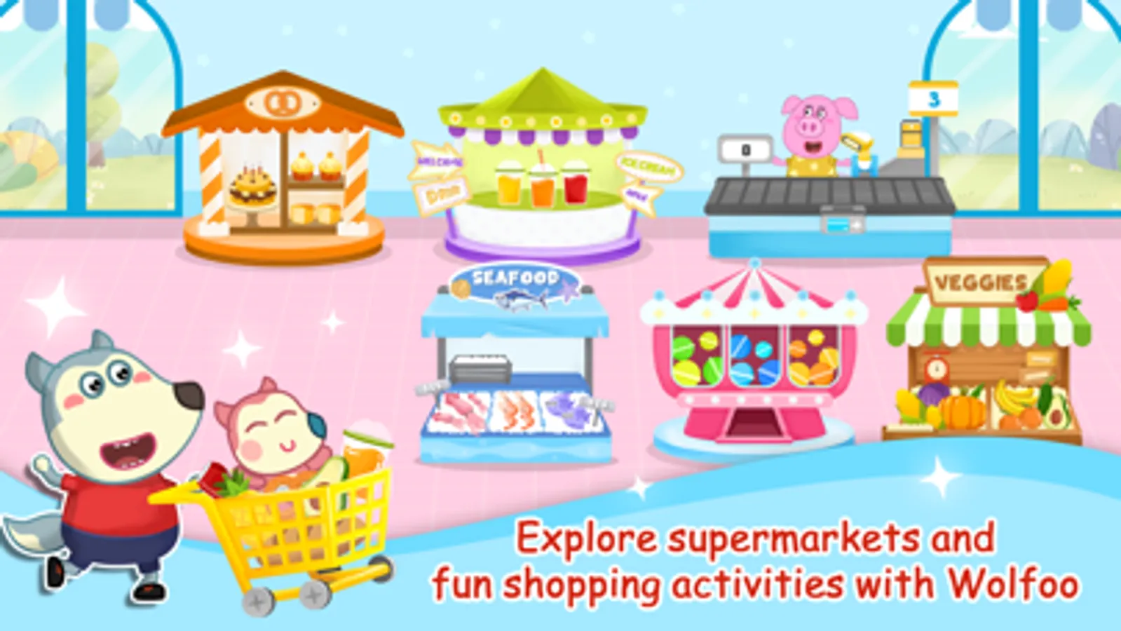 Wolfoo Supermarket, Shopping is an amazing shopping mall game for girls. In this supermarket and store game, you can have a real shopping shopping experience and manage a supermarket like a manager and store cashier. The game is suitable for preschool girls and boys who are looking for fun shopping game in their free time. Player can help Wolfoo and mom to shopping a lot of delicious foods and beautiful toys in the supermarket.