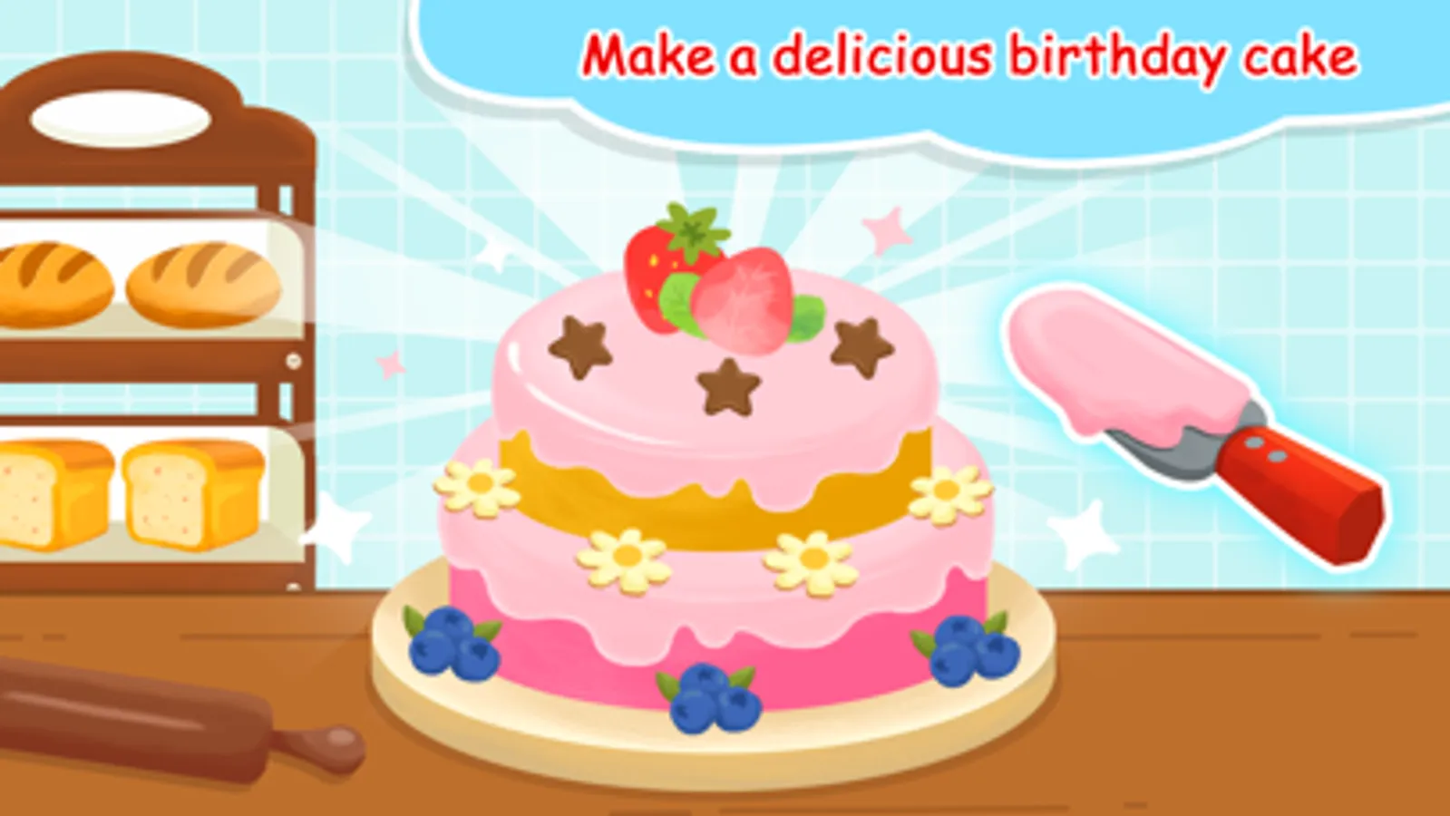 The bakery has a great variety of delicious cakes! Help Wolfoo buy breads and cakes as needed. Show your chef skills in making your own ice cream cake! Decorate the cake with cream and colorful toppings. You can make any cake you want! Become a baker and make the best cream cakes with Wolfoo.