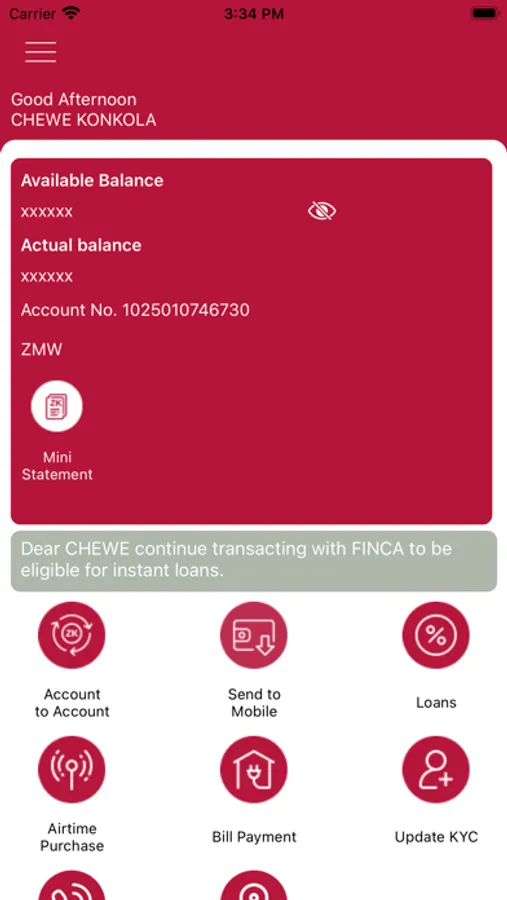 FINCA Zambia Mobile is an app that connects you to your account and enables you to access your funds for use from your mobile device