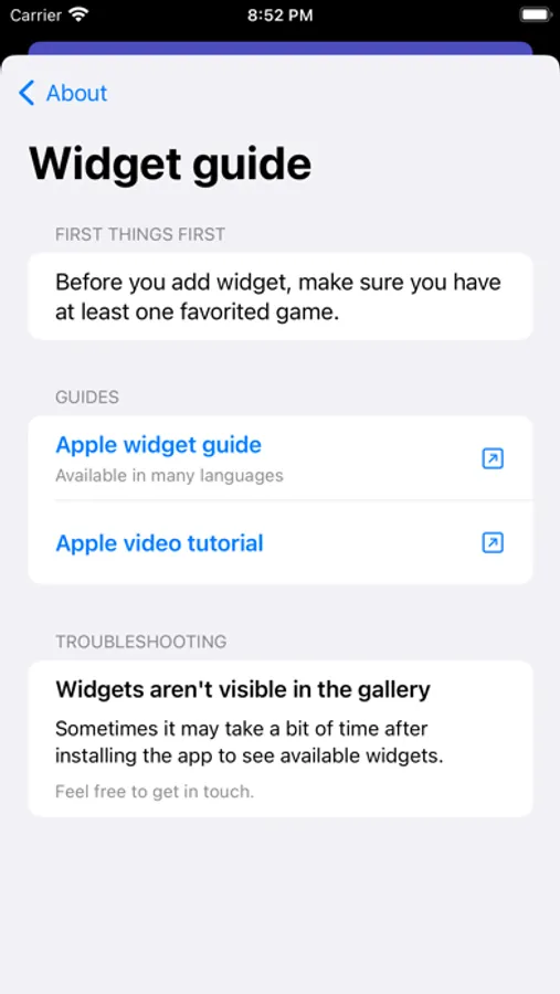 Simply favorite games you are looking forward to to keep track of and view these games in a variety of widgets.