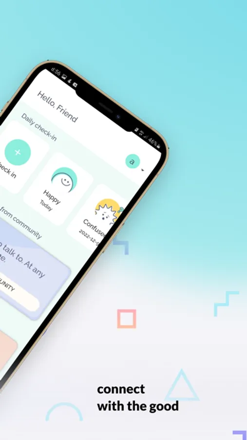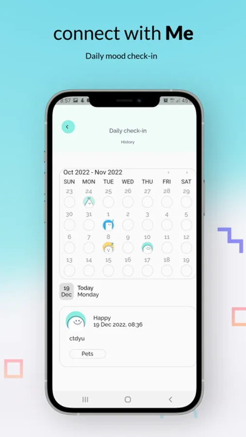 App-CONNECT: Check your mood daily and keep track on it through the month / learn new ways to cope with emotions and life challenges / share and learn from others who are going through similar situations.