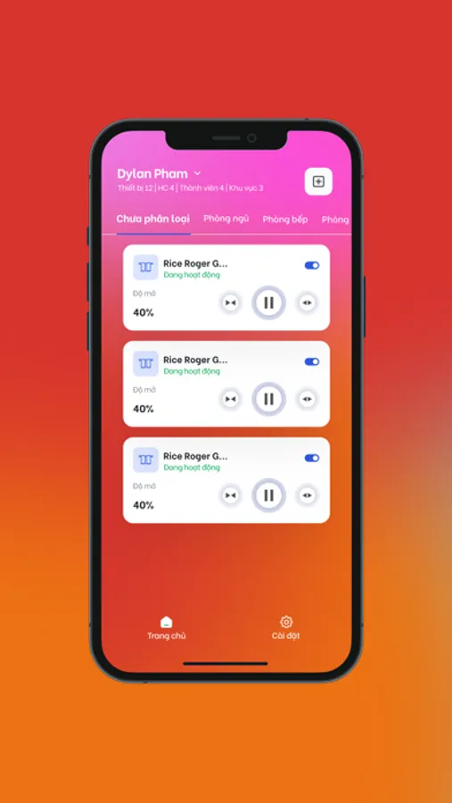 - Quản lý nhà, khu vực, phòng, thành viên qua giao diện thân thiện với người dùng