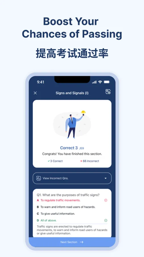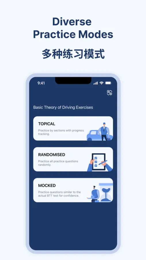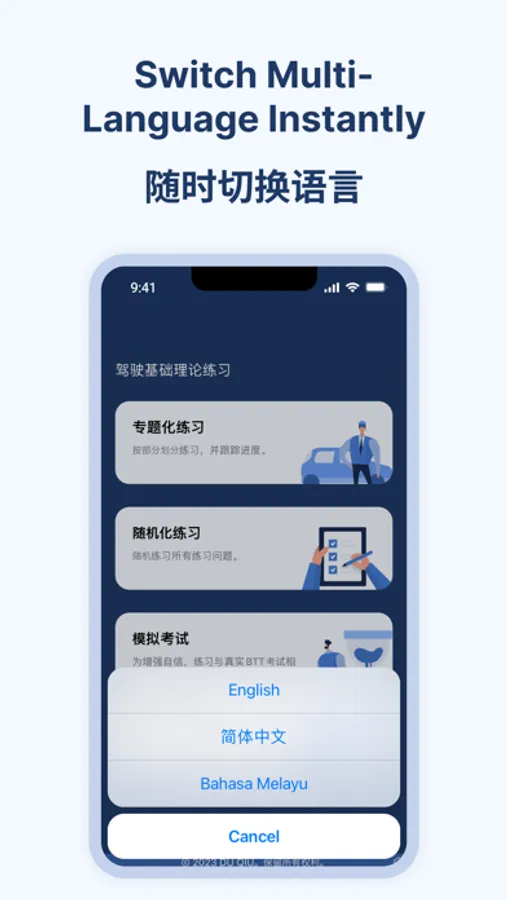 With BTT Pass, our driving test app that now supports English, Chinese, and Malay, you can study and practice in the language that suits you best. With seamless language switching, you can switch between languages instantly and effortlessly.