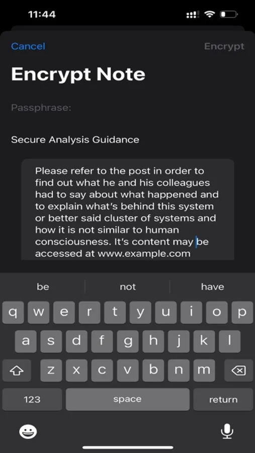 Dexterity Cloud features the AES256-GCM encryption standard along with a password based key derivation function (PBKDF2) for securely encrypting sensitive text. It does not retain any data once it's closed as it's use is meant as a medium of encryption when communicating or sending notes in other platforms or cloud providers. Keys can be stored on the Secure Enclave for easy retrieval when encrypting or decrypting text.