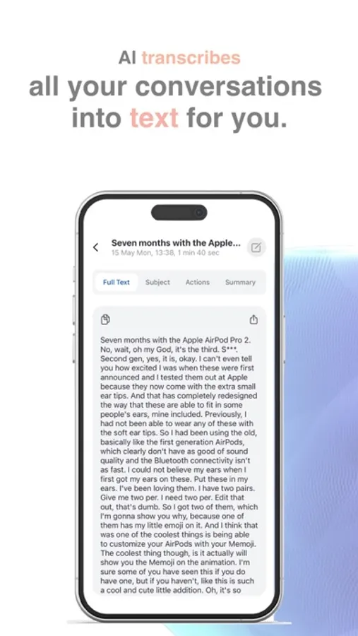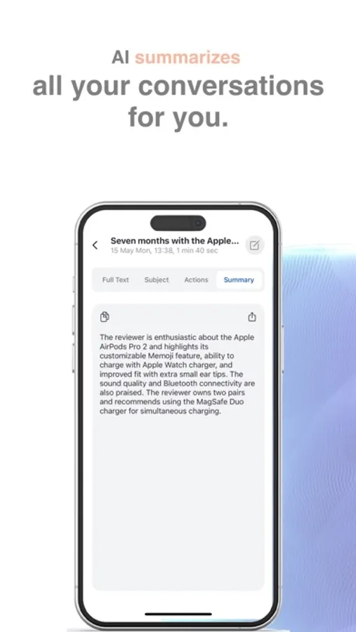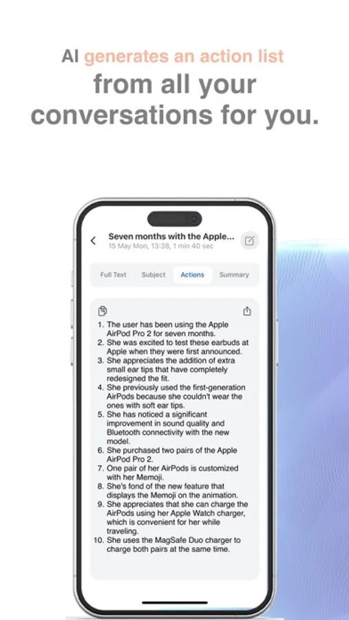 AI Meet App, your ultimate solution for meetings and discussions, whether online or in-person. With our advanced AI technology, we transform your conversations into text with remarkable accuracy. But that's not all - our powerful AI goes beyond transcription, analyzing the conversation to generate summaries and actionable insights. Collaborate effectively by sharing meeting details, ideas, and action items with your team. Experience the future of efficient communication with AI Meet App!