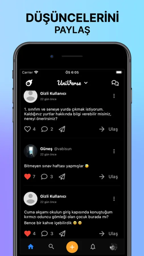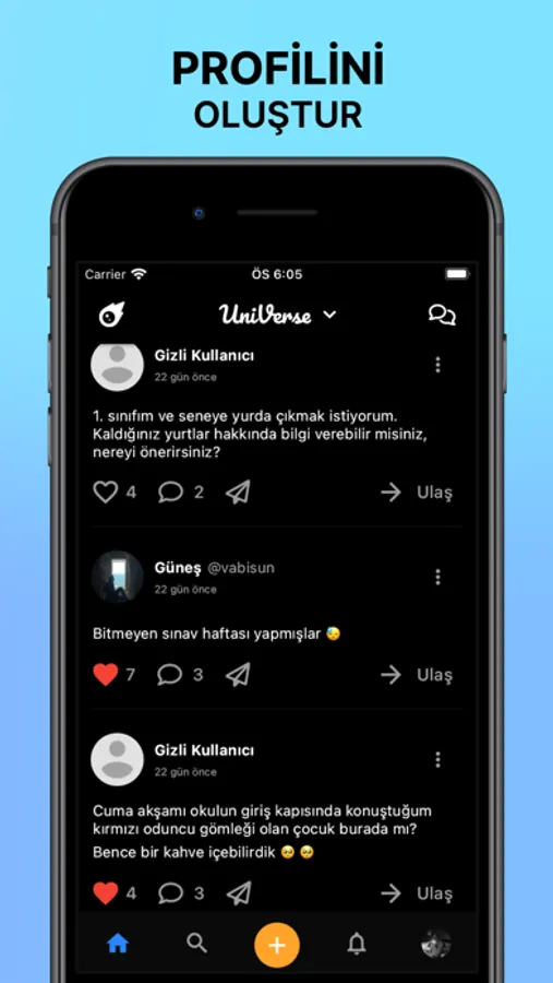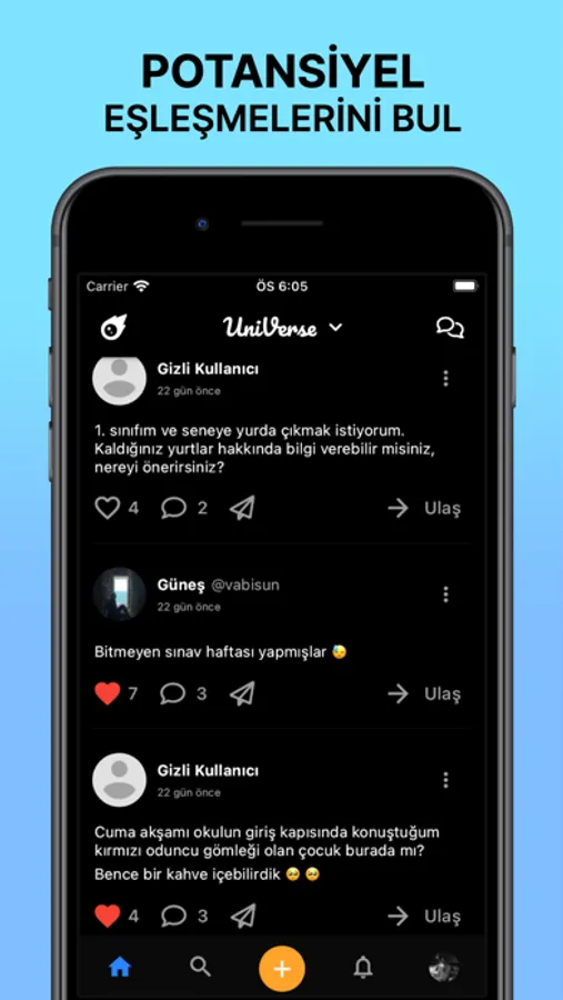 Paylaşımlar yap, gizli olarak itirafta bulun, arkadaşlarınla mesajlaş hatta potansiyel eşleşmelerini yakala!
