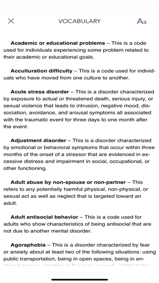 DSM-5 is the registered trademark of the American Psychiatric Association. This app is not endorsed by or affiliated with the American Psychiatric Association.
