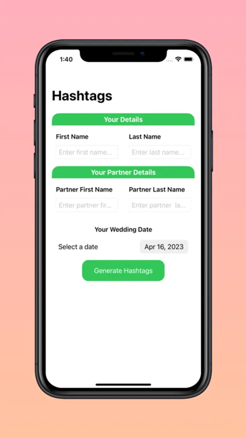 Wedding Hashtag Generator app is a useful tool for intending couple to generate cool and awesome hashtags for their upcoming wedding. With a wedding hashtag, you can easily share information with your wedding guests and visitors. The Hashtags are generated from the couple's name, prefix and wedding date.