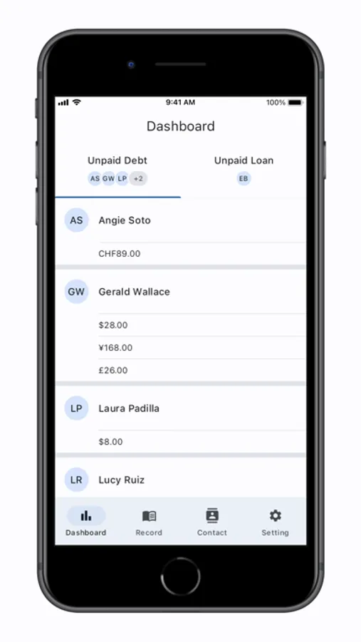 - Quick glance of all your unpaid debts and loans