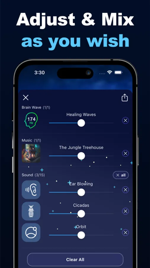 • Personalize your own mix of sounds to create the perfect ambient atmosphere.