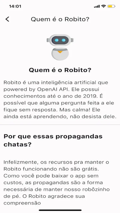 O Robito é uma inteligência artificial prontinha pra te atender.