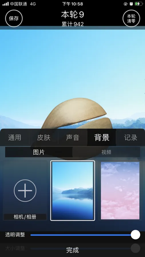 6 背景设置: 支持来自相机/相册的图片/视频做为背景,且支持透明度调整,大小调整和位置调整,营造属于您的木鱼氛围。