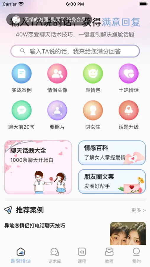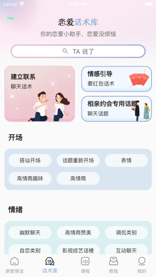 聊天话术,一款让您与女神男神甜言蜜语的神奇App。超10W+话术库,搜一搜N+精彩回复任您选择;