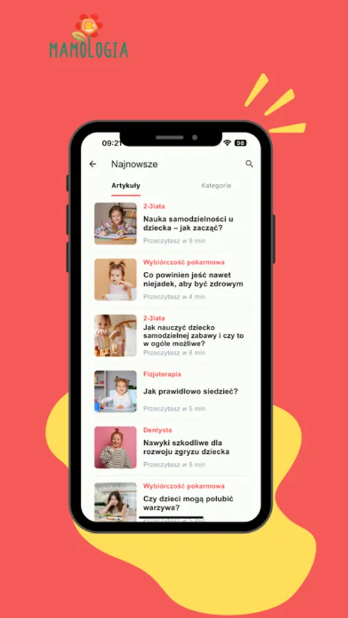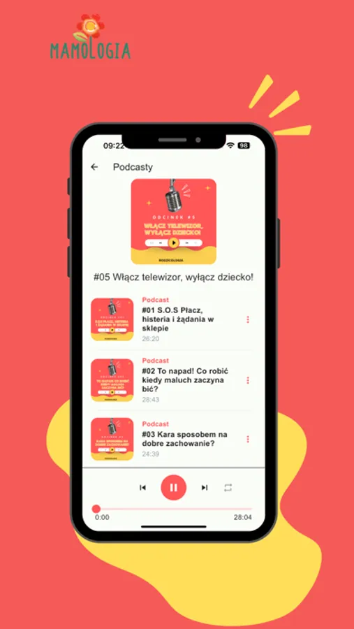 Wewnątrz aplikacji znajdują się podcasty i artykuły tworzone przez psychologa, logopedę, fizjoterpeutę i innych specjalisów. Poruszają tematy związane z macierzyństwem, rozwojem dzieci i codziennymi wyzwaniami rodziców.