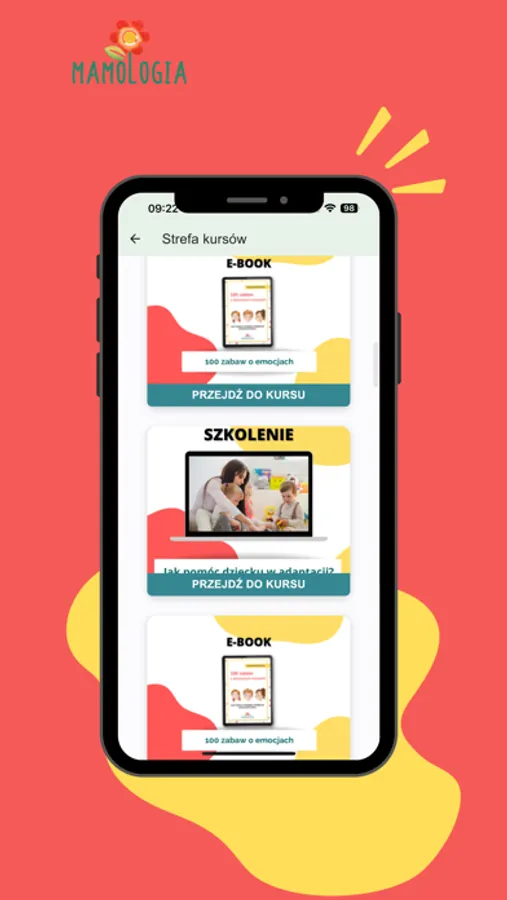 W aplikacji możesz też w wygodny sposób korzystać z kursów dla rodziców zawsze tam gdzie akurat wyrwiesz chwilę wolnego czasu.