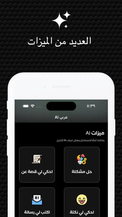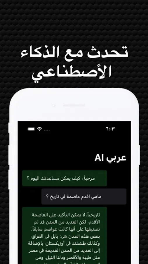 عربي AI المدعوم من الذكاء الاصطناعى هو تطبيق متوفر على الأيفون ، وهو برنامج دردشة يستخدم نموذج الذكاء الاصطناعى متطور لتقديم أي بحث ومحادثة وإكمال نصوص مدعومة من الذكاء الاصطناعى .