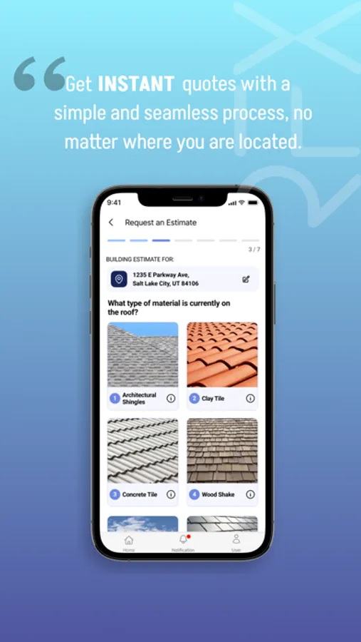 RFX's website and iOS app enable homeowners to request and receive estimates for residential services in real-time. The platform's direct API integrations with third-party providers ensure that estimates are accurate and up-to-date. Once the estimate is approved, RFX manages the contracting and construction process, including the sourcing of materials, permits, and scheduling of installations. RFX customers have real-time visibility into their project pipeline and associated statuses, communications, and relative documentation.