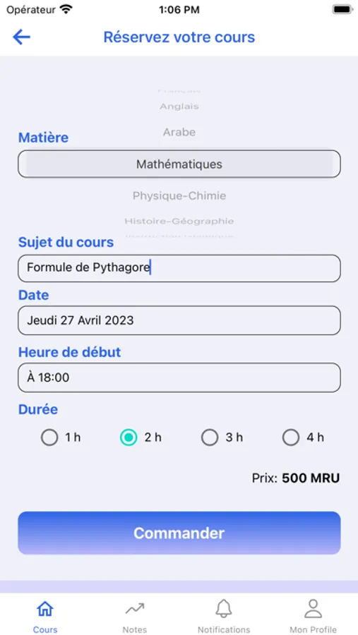 Après chaque session, le professeur notera le cours. Cette note sera visible dans votre compte sur l'application.