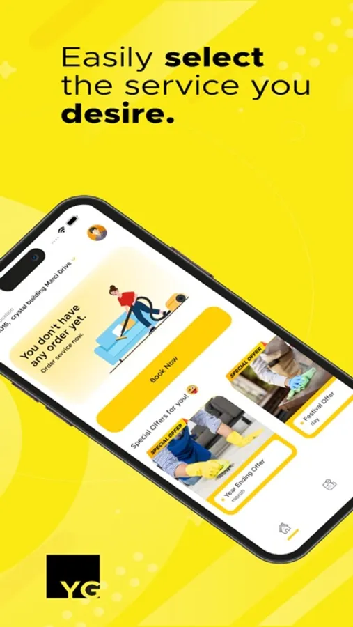 Registration: Customers download the Yellow Glove mobile application from their device's app store and create an account. This usually involves providing basic information such as name, email address, and contact details.