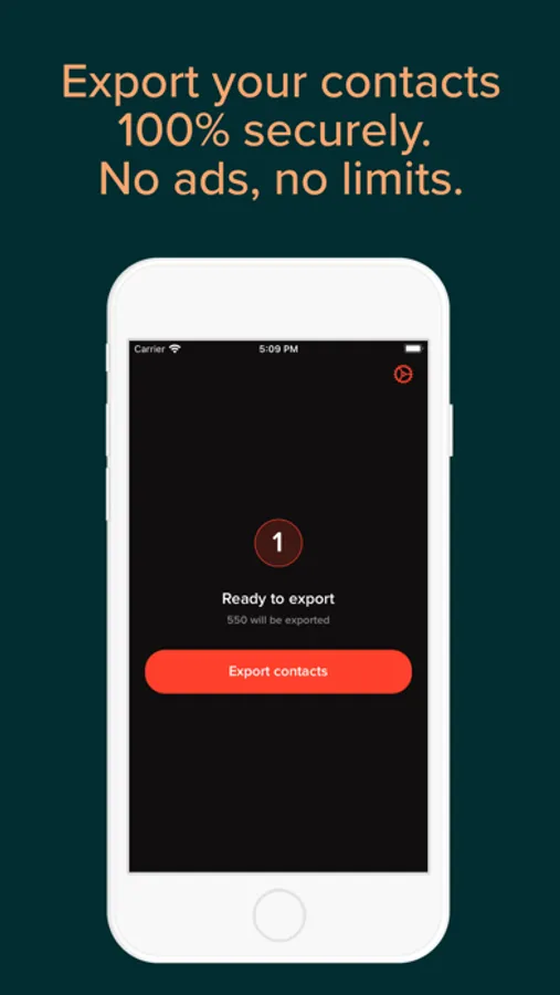 Simple Contact Exporter is a 100% secure way to export and share your contacts. The export takes place within your device and we never store or analyse your contacts on a remote server.