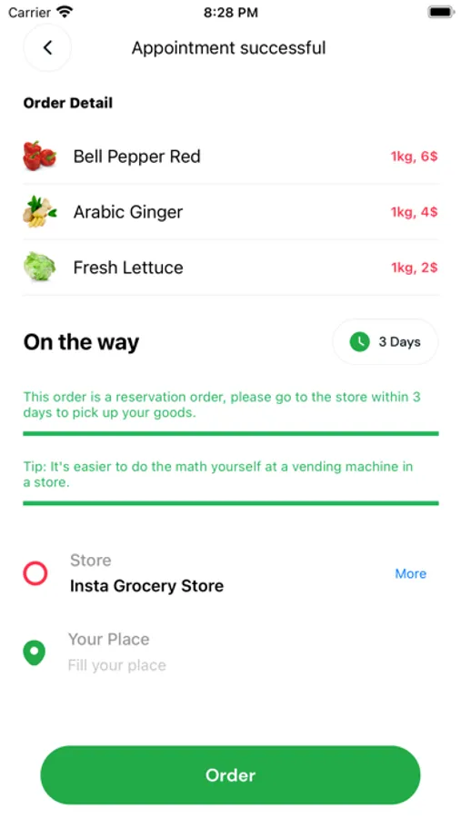 The main function is to use this app to shop for daily necessities such as vegetables and fruits in the store. It can be used to make reservations and orders for goods, which solves the trouble of queuing up to pay the bill