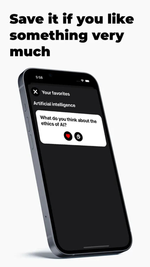 Found a particularly interesting fact or question? Simply save it to your favorites for quick and easy access later. Conversaition enables you to curate your own collection of intriguing conversation starters, ensuring you always have an arsenal of captivating content at your fingertips.